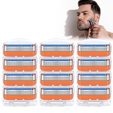 12pcs Razor Blade Shaving Razor Blade Refills for Gillette Fusion 5, Orange New Version