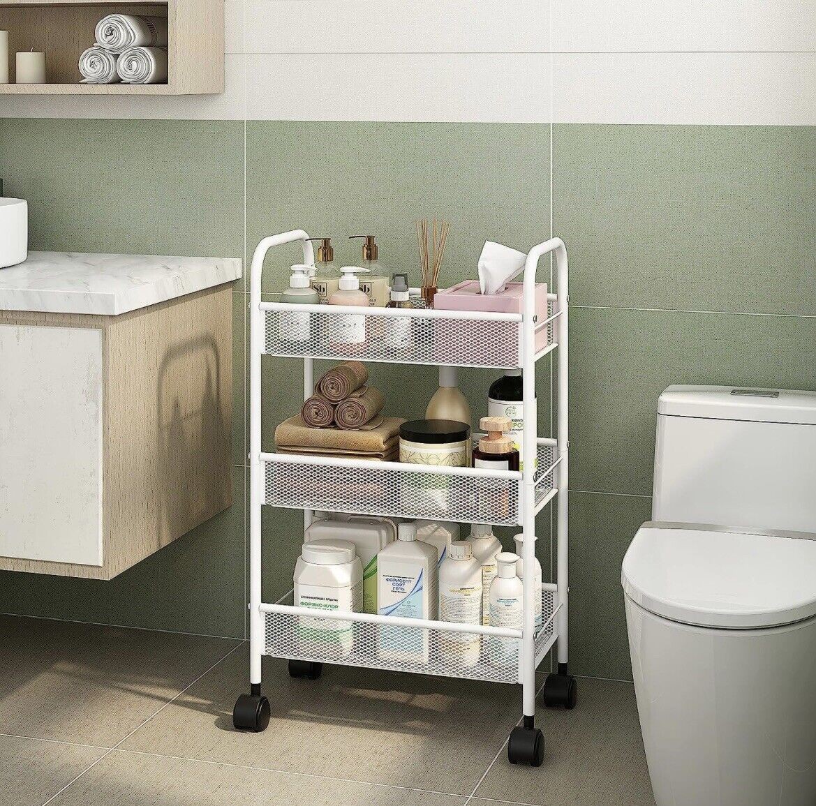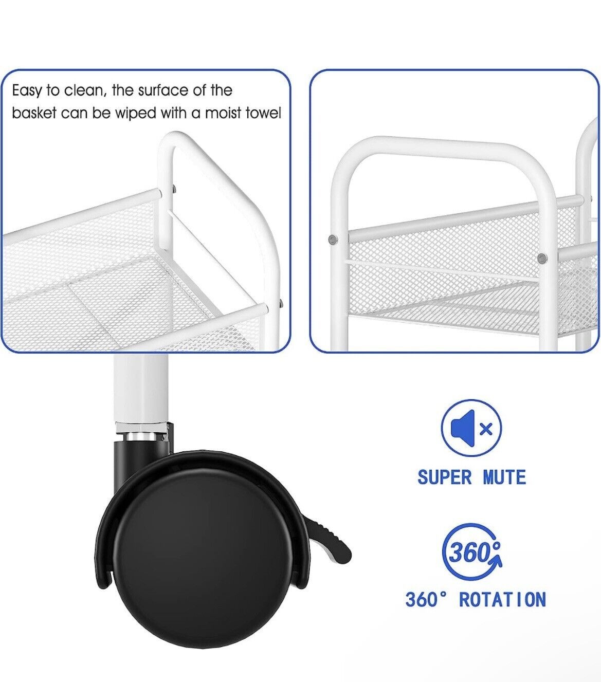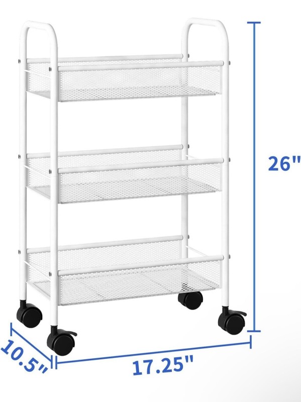 3 Tier Metal Rolling Storage Cart, Utility Organizer Storage Shelves, 4 Wheels