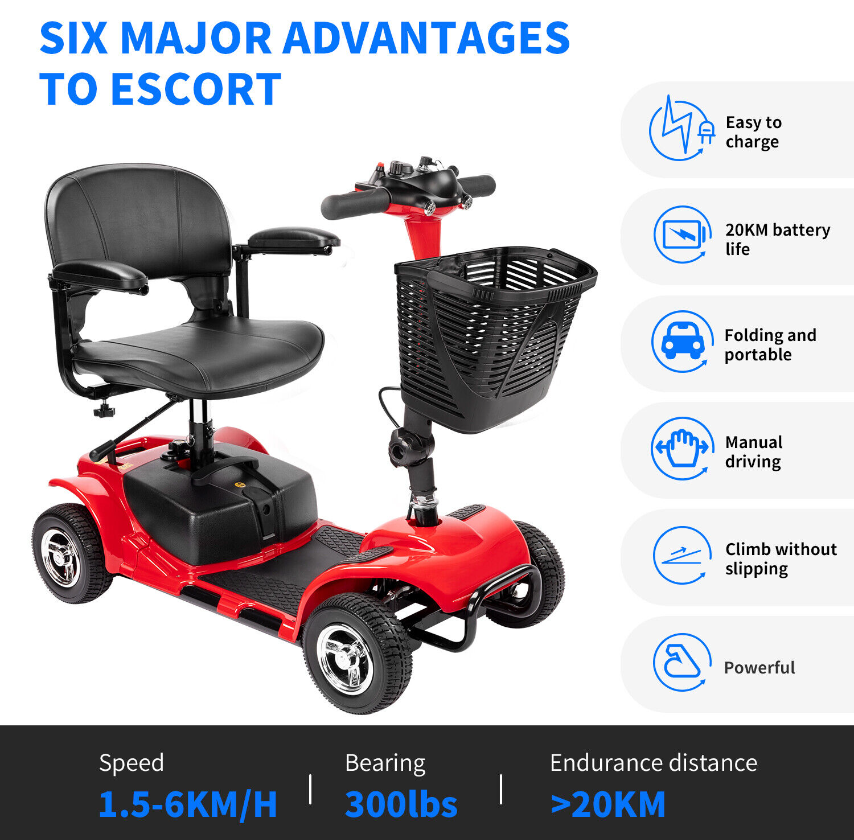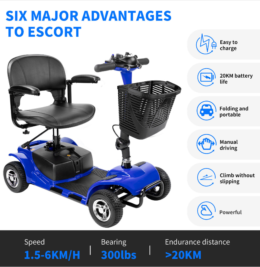 4 Wheels Mobility Scooter Power Wheelchair Folding Electric Scooters Home Travel