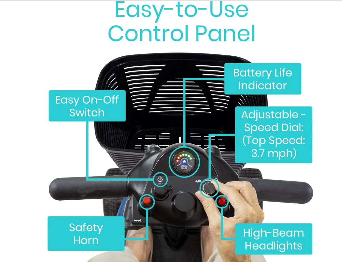 【 Easy to Transport 】 It is easy to disassemble the mobility scooter into four separate pieces without tools, you can put them in the trunk of standard size vehicles and making your travel much more convenient and comfortable!