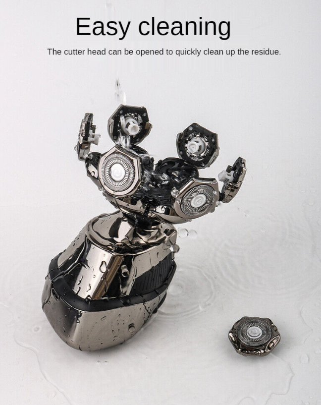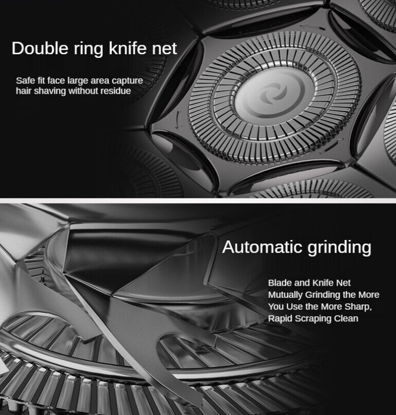 This electric shaver adopts 7D floating shaving head design, which has increased contact area compared to other heads. The center has undergone a broader transformation design. The concave center blade of the razor can increase the curvature of the razor and conform to the skin contour more closely, giving you an efficient and relaxed shaving experience.