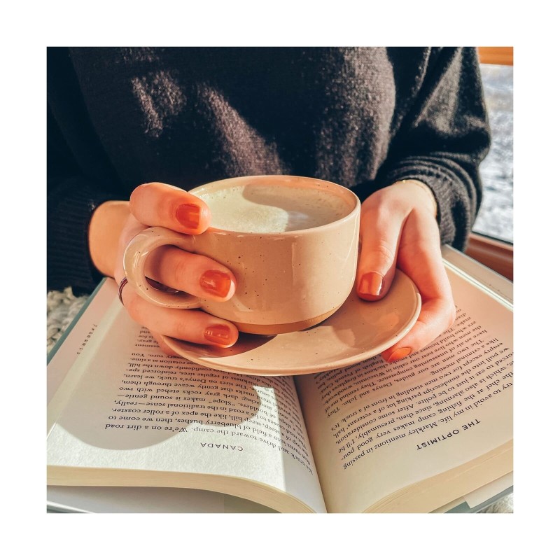 8Oz Cappuccino Mug Set of 4 - Ceramic Coffee Cups with Saucers - Microwave and D
