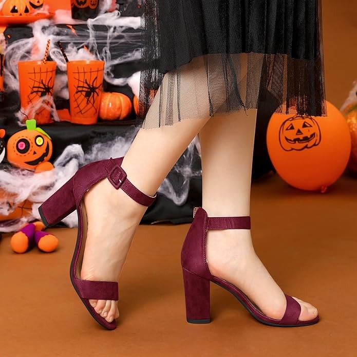 • Open Toe, Chunky High Heel, Adjustable Buckled Ankle Strap
