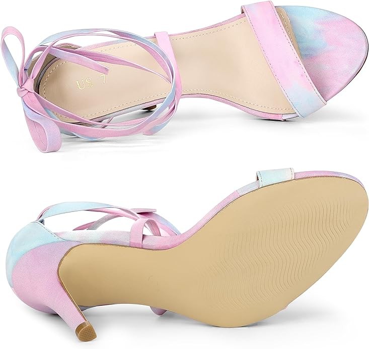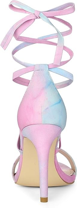 Allegra K Women's Tie Dye Lace Up Stiletto Heel Sandals