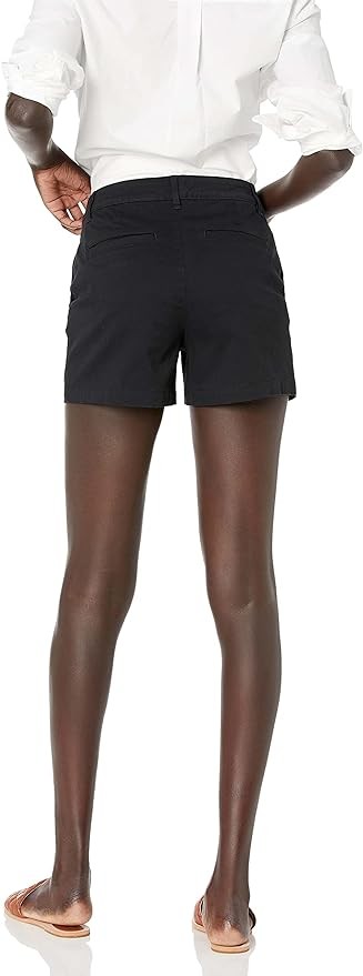 • CLASSIC KHAKI SHORT: These classic chino shorts are the ultimate summer style. Offering a clean, gently structured silhouette, these shorts also fit with comfort and ease for at work, weekend exploring, or running errands. Complete your look with Amazon Essentials Women's Sneakers or Sandals.