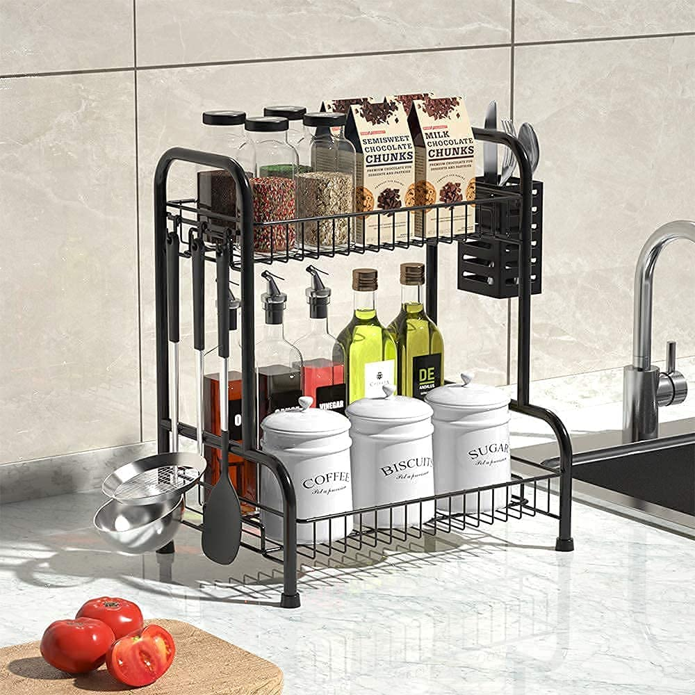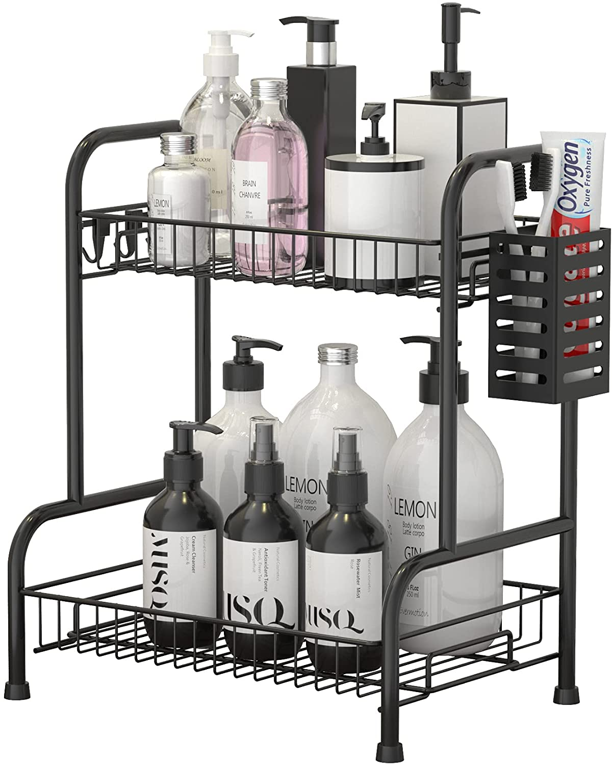 Bathroom Counter Organizer Rack with Toiletries Basket,Two Tier Stainless Steel