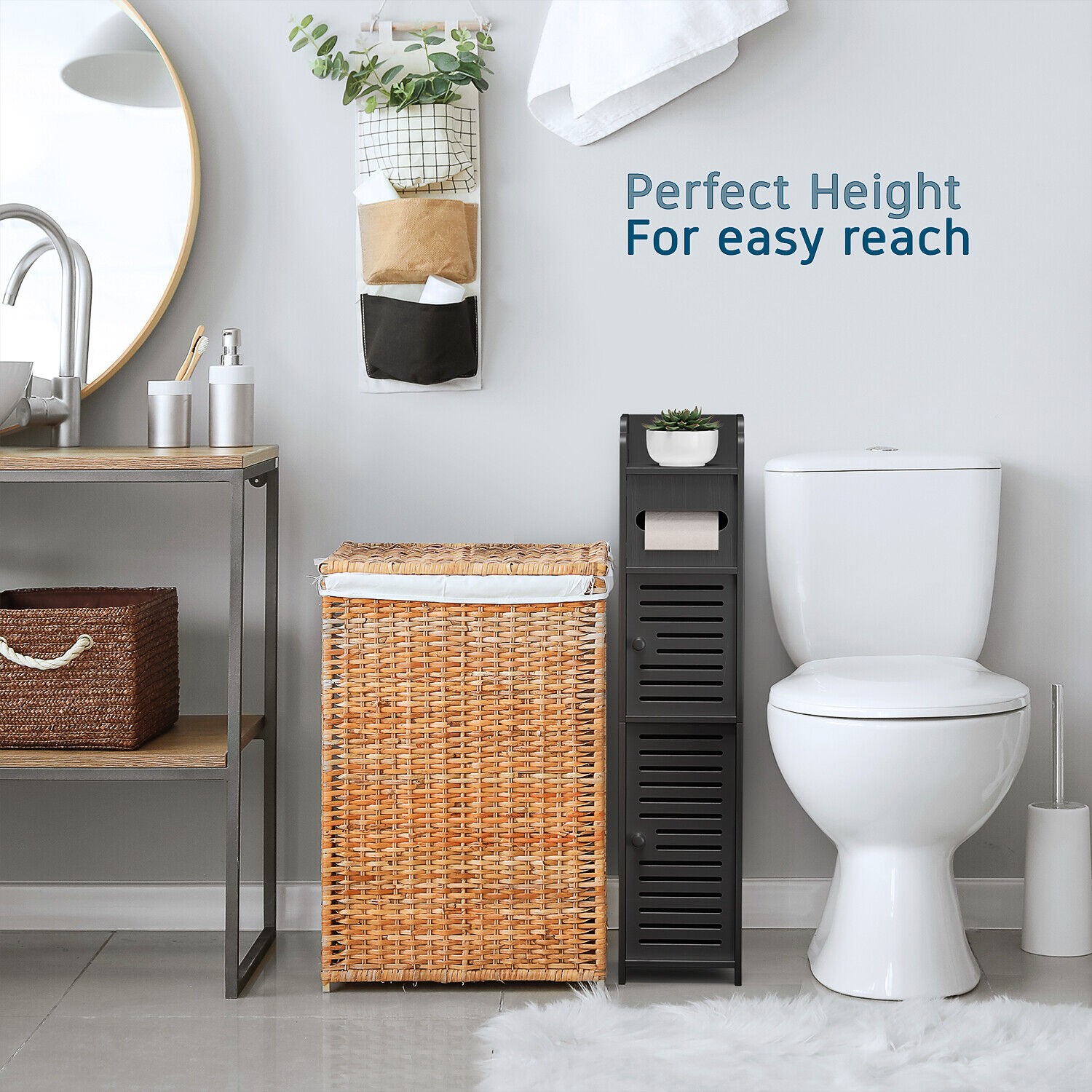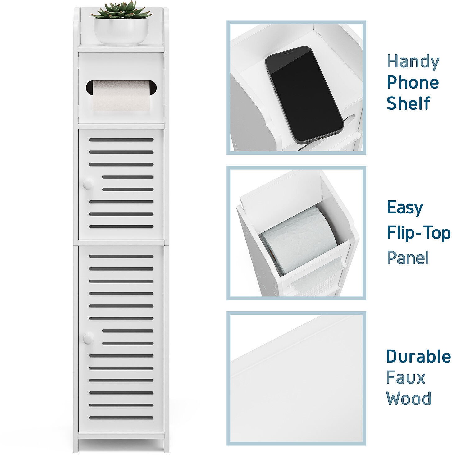 Bathroom Storage Cabinet Floor Standing Toilet Paper Organizer Shelves with Door