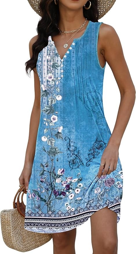 Beach Dresses for Women 2024 Vacation Swim Cover up V-Neck Summer Dress Button Down Sleeveless Boho Floral Sundress