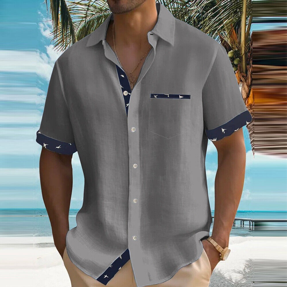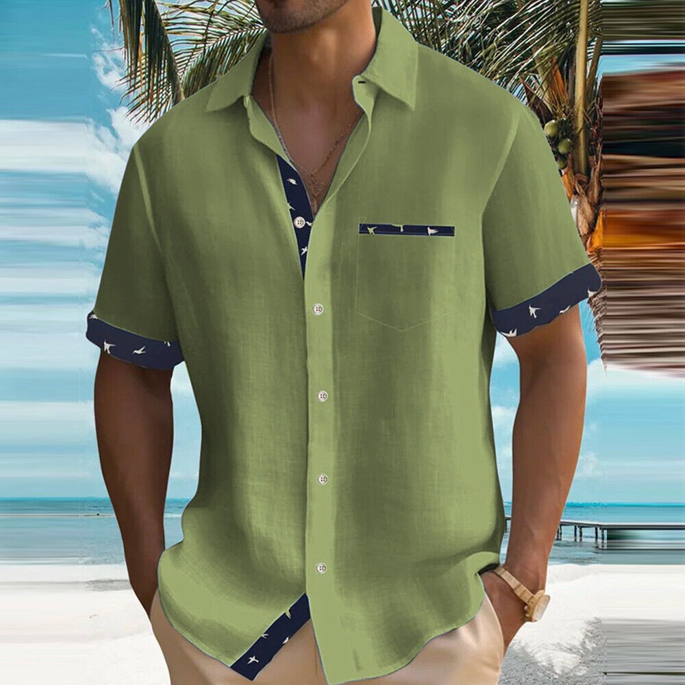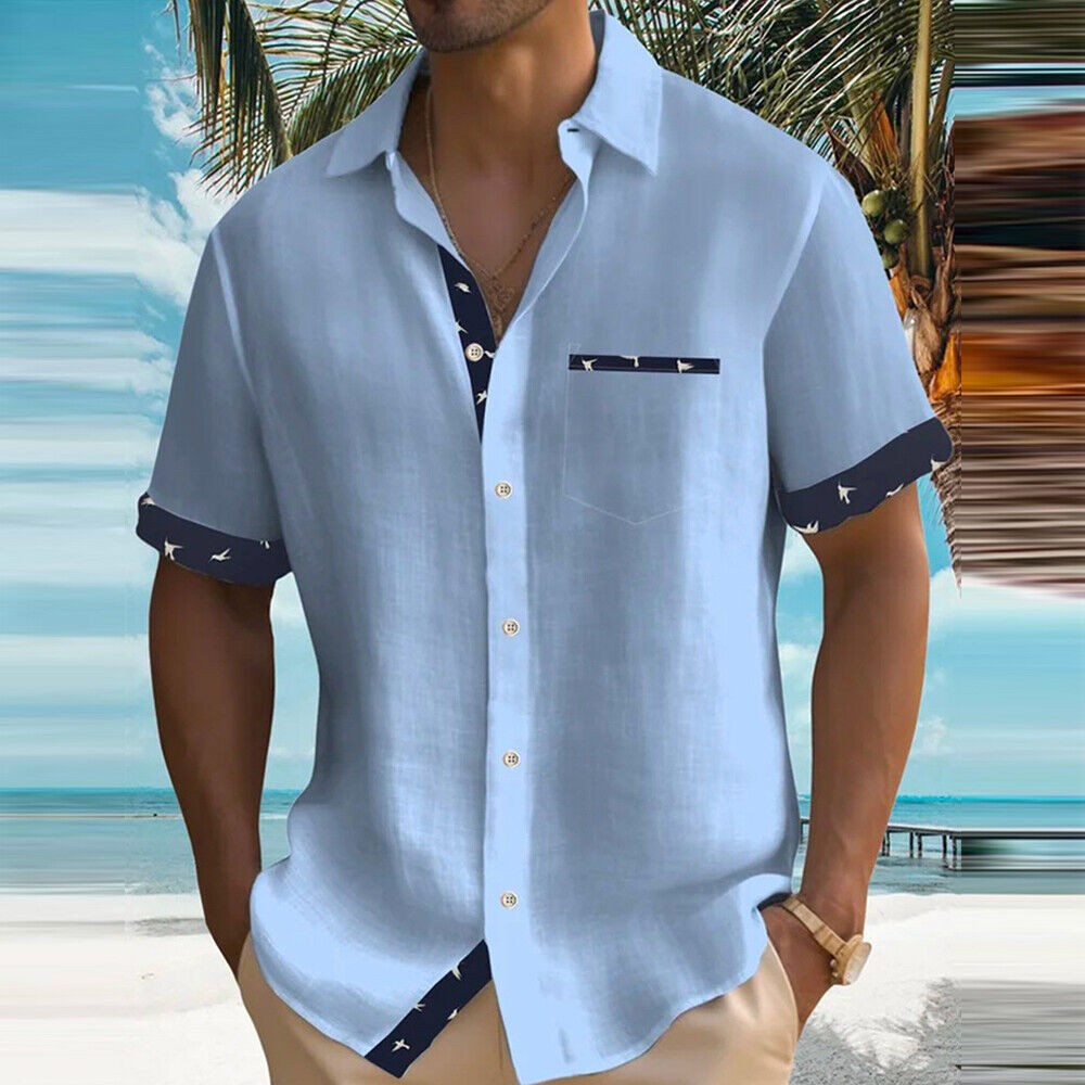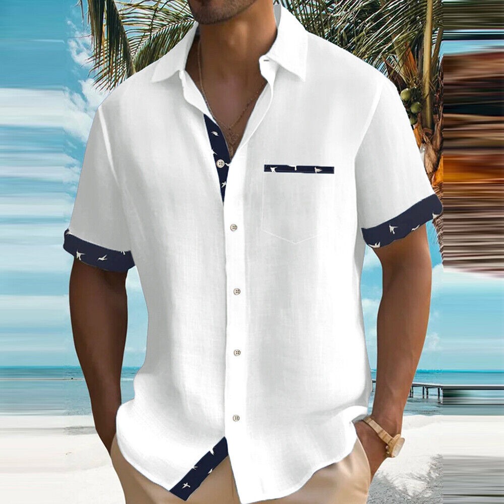 Blouse Button-down Shirt Tops Tunic Casual Pocket Color Block Short Sleeve Loose