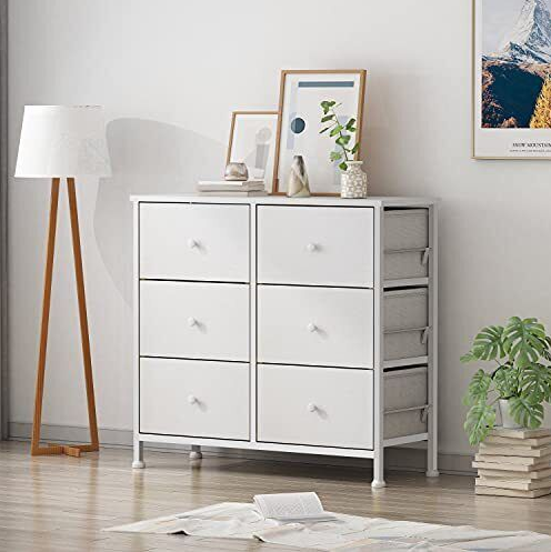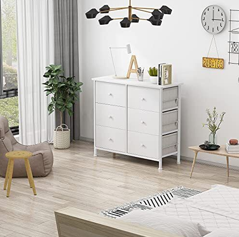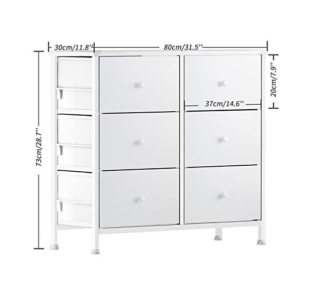[White Dressers & Chests of Drawers]: Features 6 removable storage drawers made of high-quality non-woven fabrics, wooden front , Wooden handle is not only convenient but also beautiful,no matter kids or adult. Overall dimension: 31.5''*11.8''*28.7''.Drawer dimension: 14.6’’*11.8’’*7.9’’.