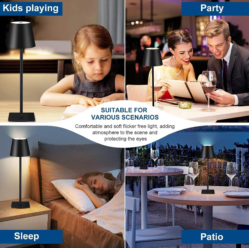 【MINIMALIST DESIGN】:Our portable rechargeable table lamp with unique and elegant round design, smooth and slender metal arm and matte light shadow make it look fashionable and minimalist, which can be matched with various scenes and styles. Suitable for bedroom, nightstand, office, restaurant, cafe, bar, hotel, outdoor patio lighting and so on. It is also a thoughtful gift for the holiday season.