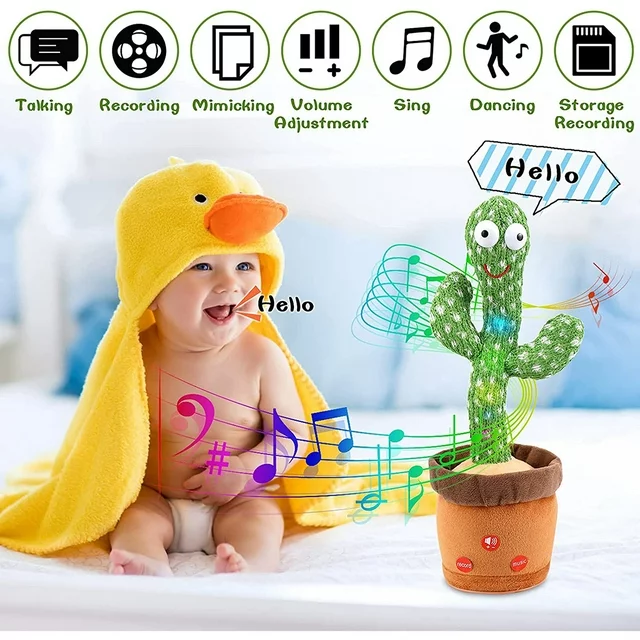 Dancing Cactus Toys, the ultimate joy for birthdays! Our adorable cactus toy is a TikTok sensation, spreading laughter among kids aged 3 to 14. With its mesmerizing dance, singing, twisting, and shining abilities, it guarantees endless fun. Boasting 120 English dance recordings, including the charming Dancing Cactus with Hat, it's an educational delight too. However, don't let the little ones under 3 miss out – their reactions are priceless! Join the TikTok trend and bring home the laughter. Shop now for the perfect birthday surprise!