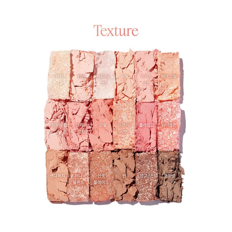 A summer coral palette that shines brilliantly with the addition of crushed mother-of-pearl glitter under the coral-colored sunlight.