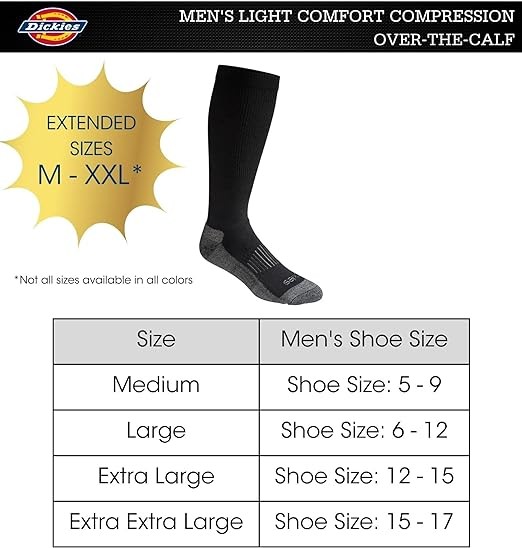 Dickies Men's Light Comfort Compression Over-the-calf Socks