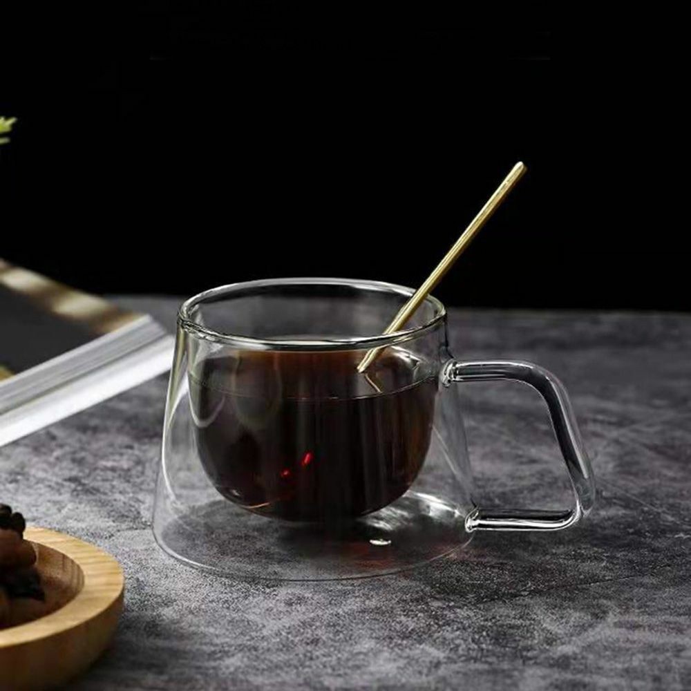 Double Wall Insulated Double Glass Cup with Handle Breakfast Mug Coffee Tea Cup