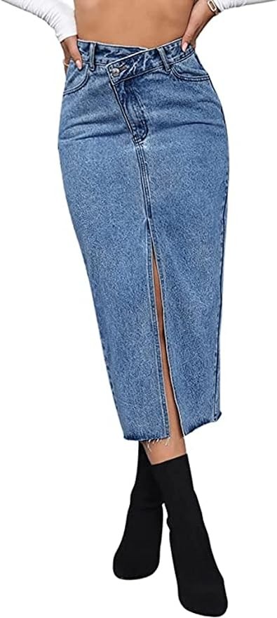 ELSTAROA Women's Casual High Waisted Solid Button Up Denim Jean Skirt