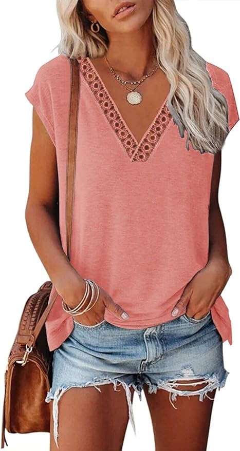 • Features: This lace top for women featuring with cut out detail, short sleeve, regular fit, sexy style, casual style, fashion style, basic style. V-neck top