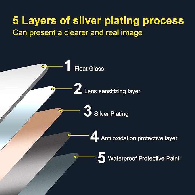 • ?High Reflective Quality Bathroom Mirror: Made of 5mm HD environmental friendly copper-free silver mirror, this wall mounted bathroom vanity mirror offers high reflective quality and gives you a clear, clean reflection experience. Reflective quality makes small spaces look larger