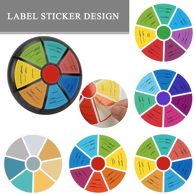 • ⏰Small Pill Case: [Maximum Convenience] With 7 compartments, this pillbox can store a week's worth of pills by day or by supplements type. It comes with 5 stickers for labeling different medications names.