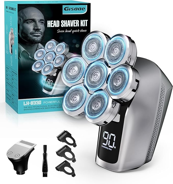 Gisaae Head Shavers for Bald Men, Upgraded 7D Electric Razor for Men Cordless Rechargeable Electric Shavers for Men Ipx7 100% Waterproof Dry & Wet Bald Head Shaver Beard Grooming Kit with Led Display