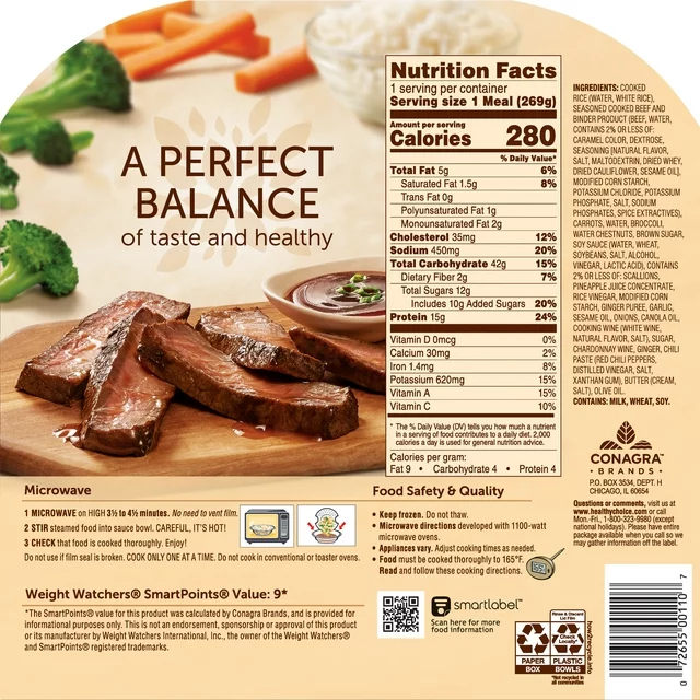 Enjoy satisfying and quick meals with Healthy Choice Café Steamers Beef Teriyaki. This frozen meal combines tender beef strips with rice carrots, broccoli and water chestnuts in a sweet teriyaki sauce for a delicious and convenient premade meal. Made with no preservatives, this tasty frozen beef teriyaki provides a wholesome microwave meal full of flavor. Perfect for prepared meals at work or an easy frozen dinner option at home after a long day, keep this delicious Asian dish in your freezer to always have healthy meals on hand. Healthy Choice never compromises on ingredients so you can taste the goodness in every bite.