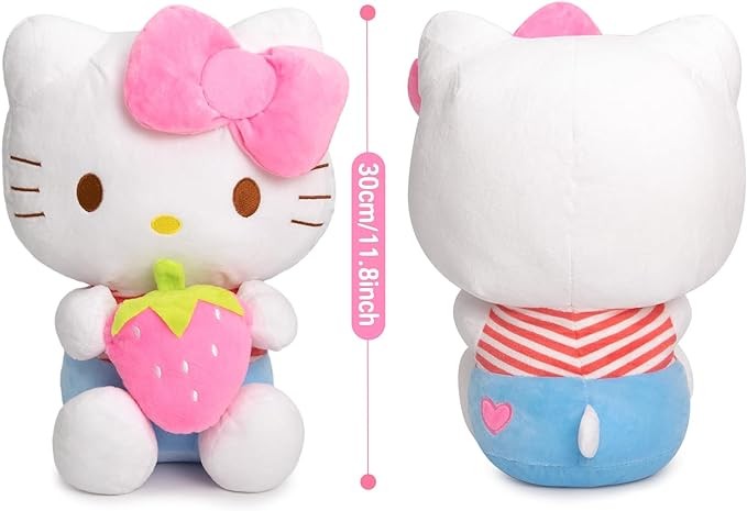 Hello Plush Kitty Toys,11.8 Inch Kawaii Soft Cat Anime Stuffed Animals, Birthday New Year Christmas Party Gifts for Girls Kids Fans (Pink)