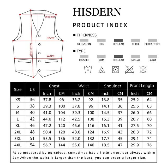 • 【Suit Vest for Men】Only 1* Waistcoat.8 size; 3 Real Pocket; 5 buttons; Waistcoat back can be adjusted.