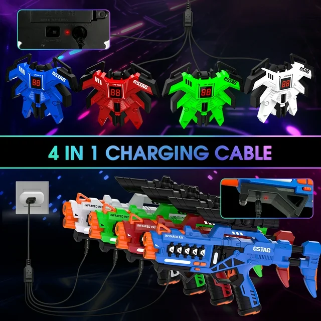 • ARCADE STYLE LAZER TAG GAME:Turn your home or backyard into a laser tag arena with the laser tag blaster set,this fully interactive set designed with infrared receivers and light emitters that are fun and reduce the chance of injury.