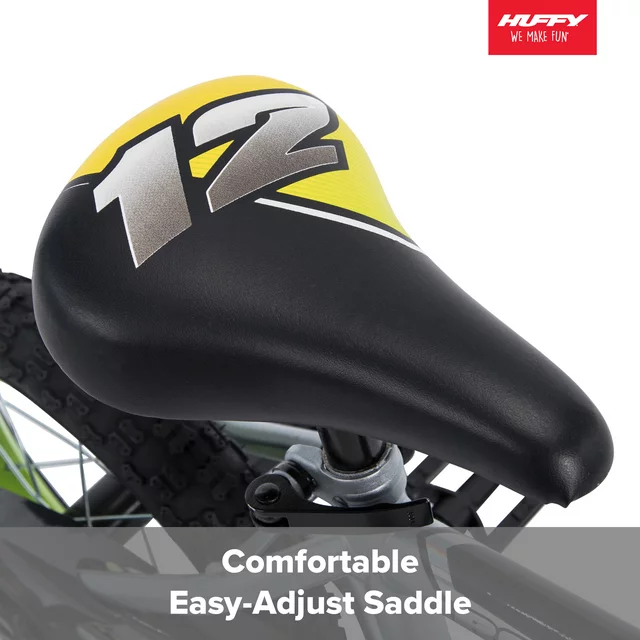 Daring adventure and excited riders inspired the Huffy Rock It bike. This 12" boys' Matte Grey and Lime bike features a bold style with training-wheels. Matte Grey and Lime graphics decorate the durable steel frame to create an energetic look. The comfortably padded seat and handlebar pad complete the overall design. Plus with Huffy EZ Build, only from Huffy, it's quick and easy to assemble. Your adventurous boy will absolutely love this bike! The bike has all the right specs for fun rides in the neighborhood or at the park. Recommended Child Age: 3 years old and up.