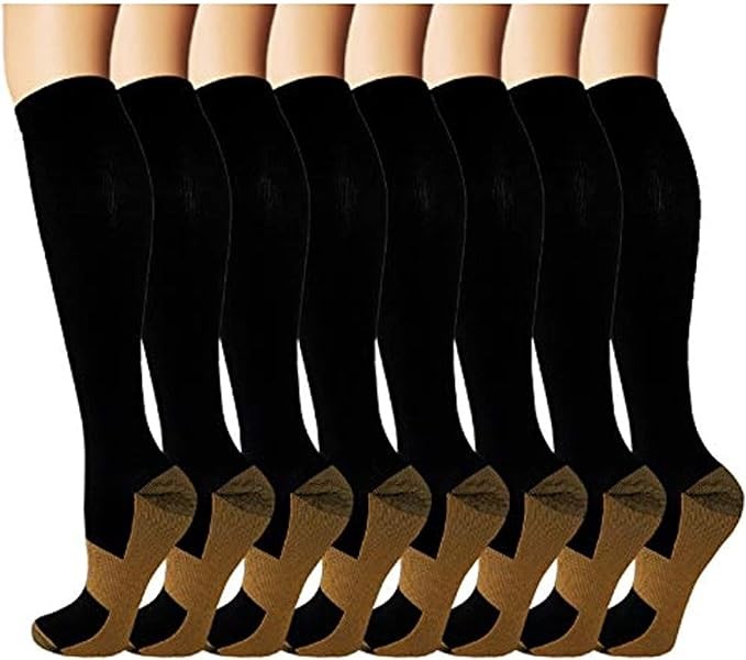 • ✅COMPRESSION SOCKS - 8 pairs of quality socks with unique color combination. The pack of 8 is perfect for a whole week without having to worry about daily wash. We spend so much time on our feet yet tend to neglect our feet/legs. Why settle for anything less than fast relief at a great value? And while you are at it, grab a few pairs for your family, friends, or loved ones as a gift that is functional and beneficial to their health!