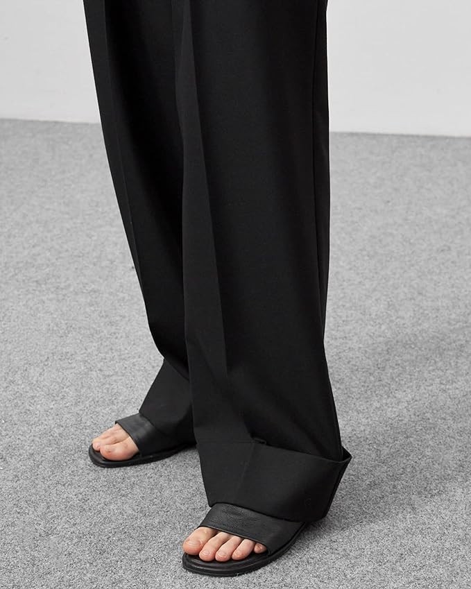 JEAAMKSSER Women’s Wide Leg Trousers Pants High Waisted Black Business Work Straight Leg Long Pants
