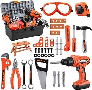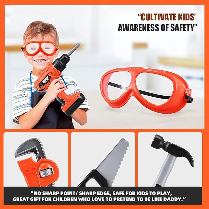 • ?【Durable & Safe Material】 this kid tool set is made of premium ABS plastic, safe and eco-friendly, harmless to humans. Also, it makes our toys greater stiffness to increase robustness. No sharp parts will hurt children. All of these tools have been created to be a perfect size, rounded edges and smooth surface for your child’s smaller hands to handle.