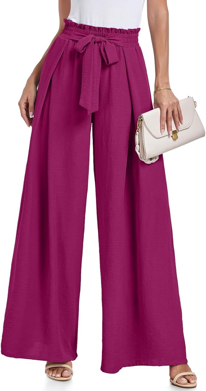 Lepunuo Wide Leg Pants for Women High Waisted Palazzo Pants Work Casual Flowy Tie Knot Trousers with Pockets