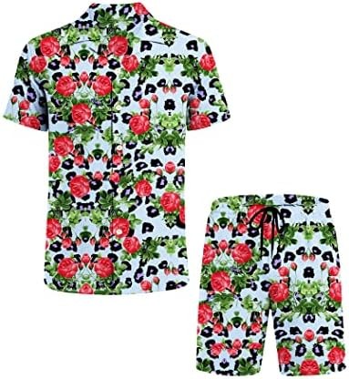 LUCKYOUNG Men's Hawaiian Shirt and Short Set 2 Piece Short Sleeve Button Down Shirt Beach Vacation Outfits for Men Suit Sets