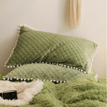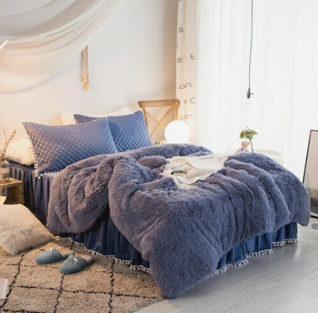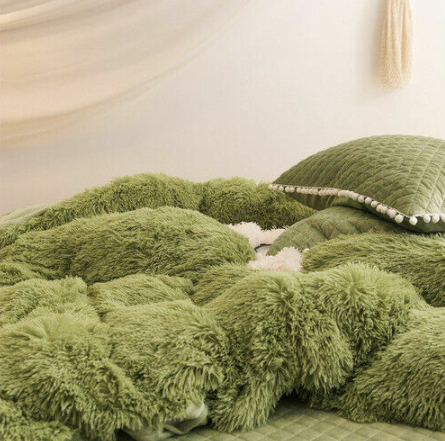 Luxury fruit green plush fluffy mink velvet duvet cover Qui stitched bedding set