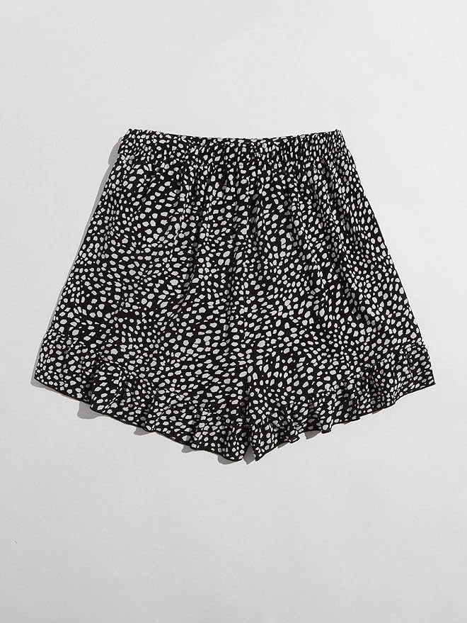 MakeMeChic Women's Boho Floral Print Elastic Waist Ruffle Wrap Tie Skorts Skirt Skorts