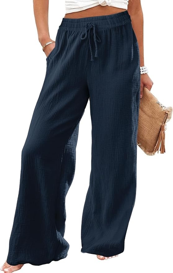 • 【Trendy Design】The linen-blend pants feature an elastic waistband and adjustable drawstring, adding a touch of versatility, allowing you to customize the waistline to your preference. Their loose and flowy wide leg design allows for unrestricted movement, while the stretchy. Cozy material embraces your body with a relaxed fit, making them perfect for casual occasions.