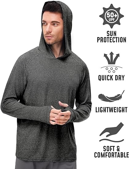 • UPF 50+ Protection--- Our men's hoodie shirts with thumb holes design offer superior sun protection with a UPF 50+ rating, ensuring your skin is protected from harmful UV rays while enjoying outdoor activities like fishing, hiking, swimming, running, surfing, and more.