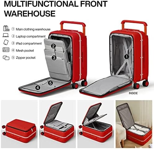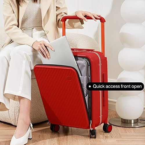 Mixi Carry On Luggage 20'' Suitcase with Front Laptop Pocket, Wide Handle Rolling Travel Suitcases PC Hardshell with Aluminum Frame Spinner Wheels & TSA Lock, Carry-On Luggage(Red)