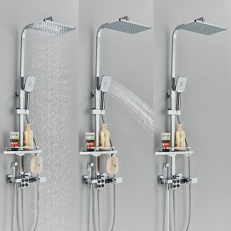 Modern Thermostatic Exposed Bathroom Shower Twin Head Bar Set Mixer Square Valve