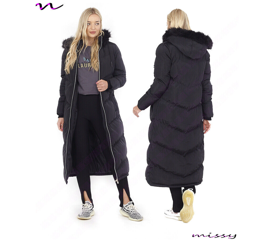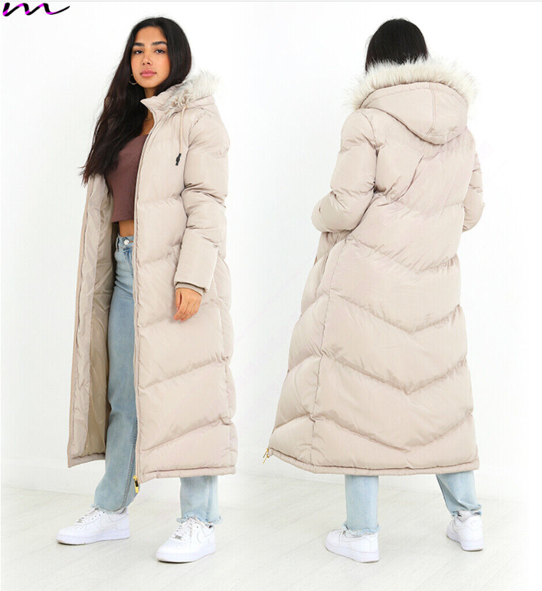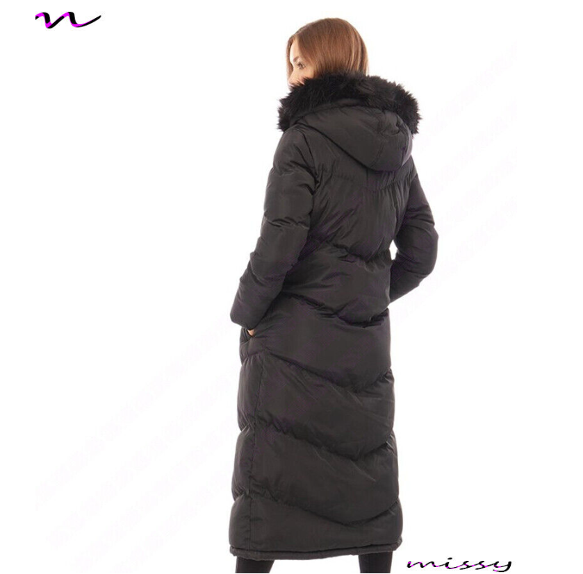 NEW Womens LADIES MAXI LONG PUFFER PARKA Quilted WINTER COAT FUR HOOD LONG