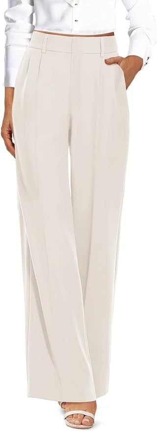 onlypuff Women Pants Work Business Dressy Trousers Wide Leg High Waisted Slacks with Pockets