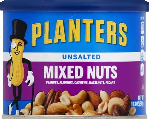PLANTERS Roasted Unsalted Mixed Nuts, 10.3 oz Canister