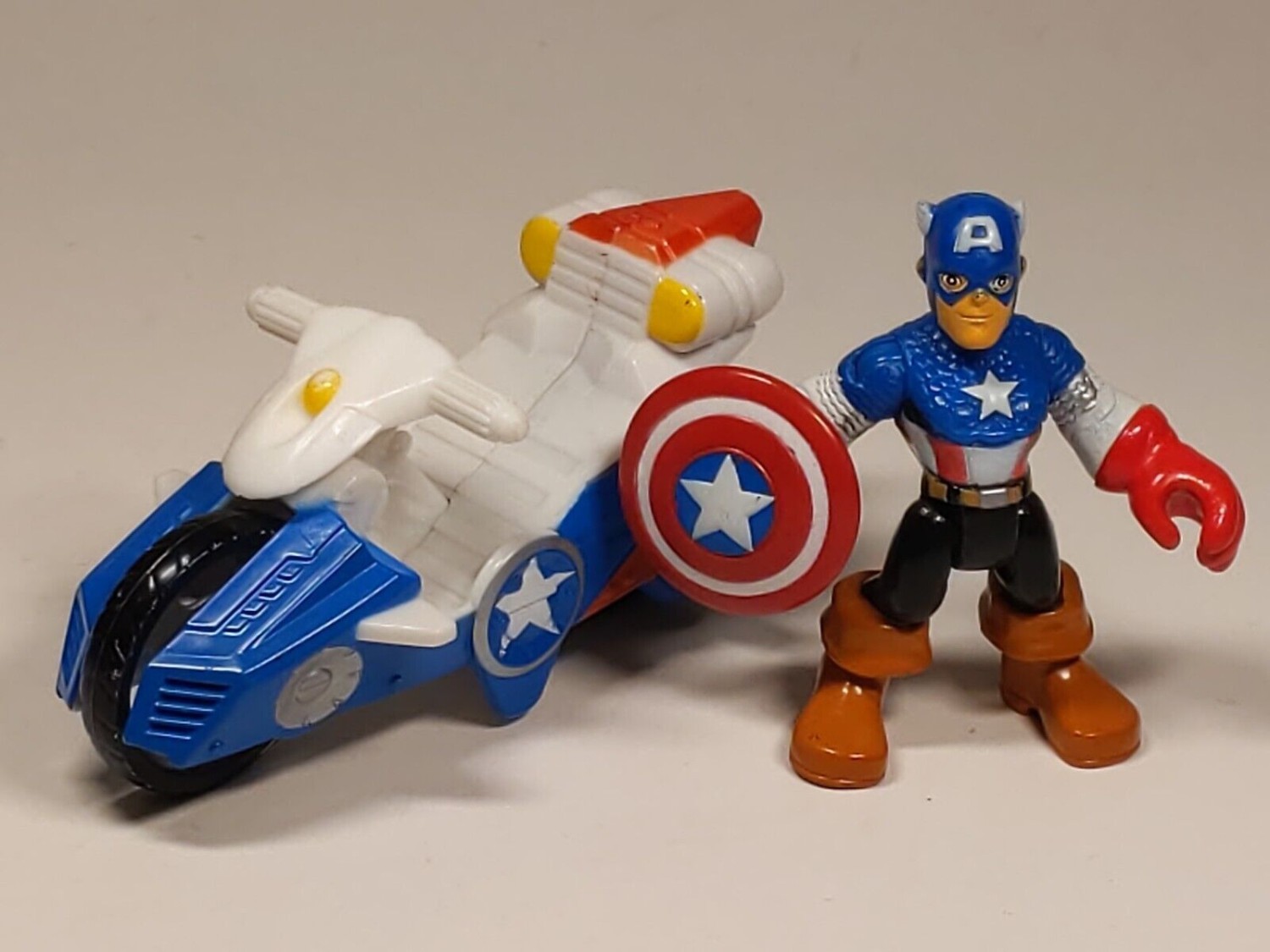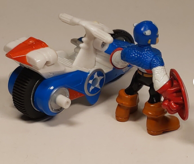 Playskool Heroes Marvel Super Hero Captain America & Shield & Racer Motorcycle.