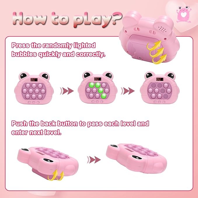 Pop Fidget Kids It Games Toy, Fast Push Bubble Game Console with LED Screen for Kids 8-12, Handheld Quick Push Game, Autism Sensory Toys, Birthday Xmas Gifts for Boys, Girls, Adults (S Eyes Frog Pink)