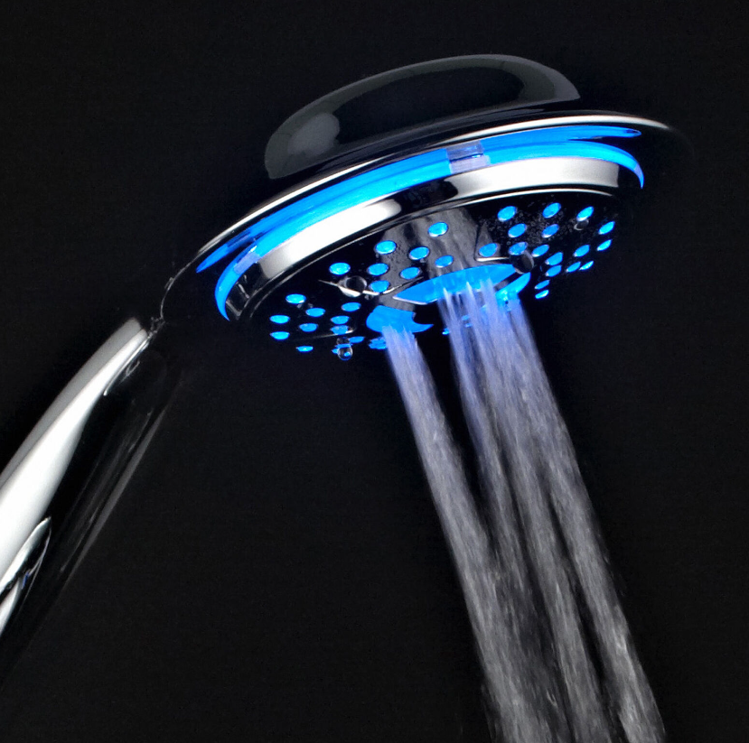 PowerSpa All-Chrome 7-Color LED Shower Head/Hand Held Shower High Pressure Twin