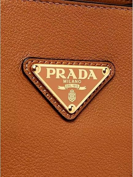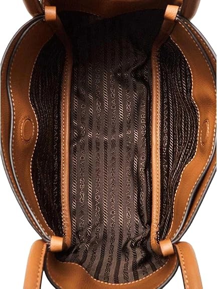 Prada Womens Soft Grain Leather Caramel Brown Small Shopping Shoulder Tote Handbag