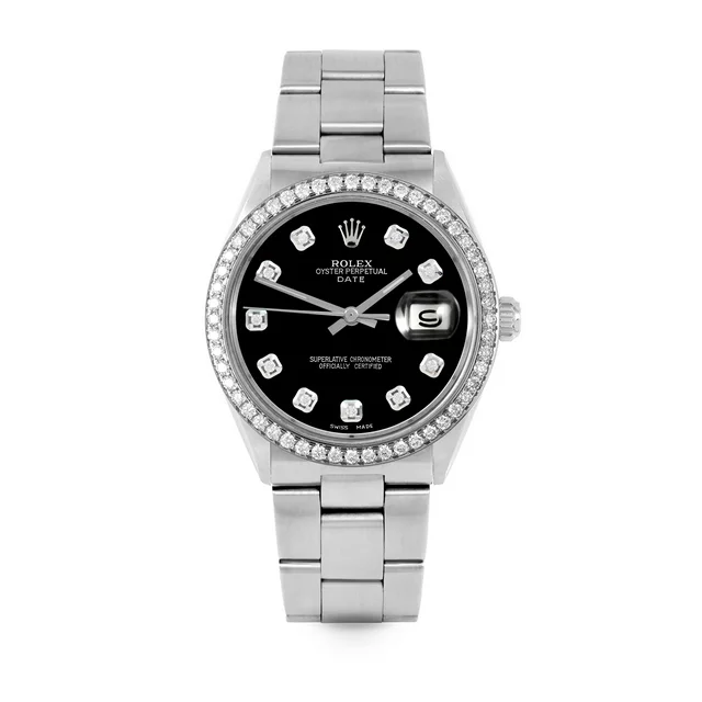 Pre-Owned Rolex 1500 Men's 34mm Date Watch, Custom Black Diamond Dial & Custom 1ct Diamond Bezel on Rolex Stainless Steel Oyster Band