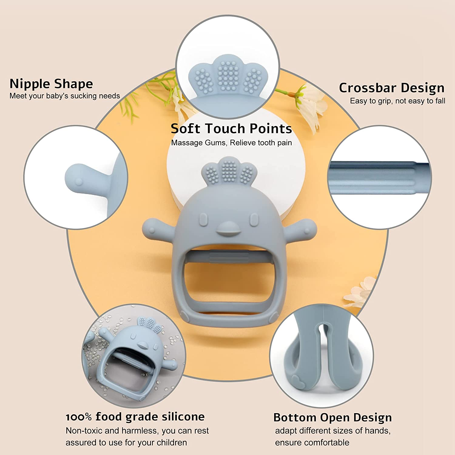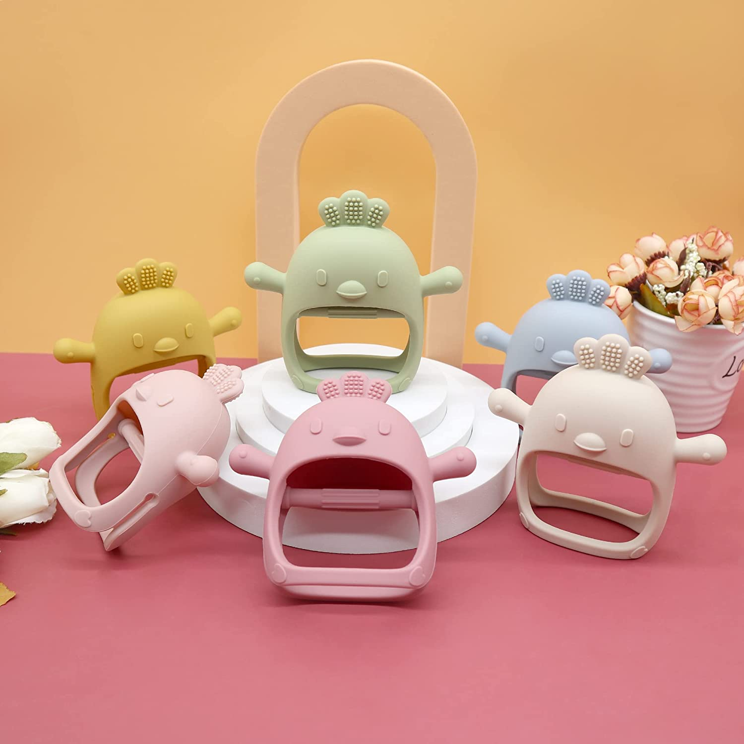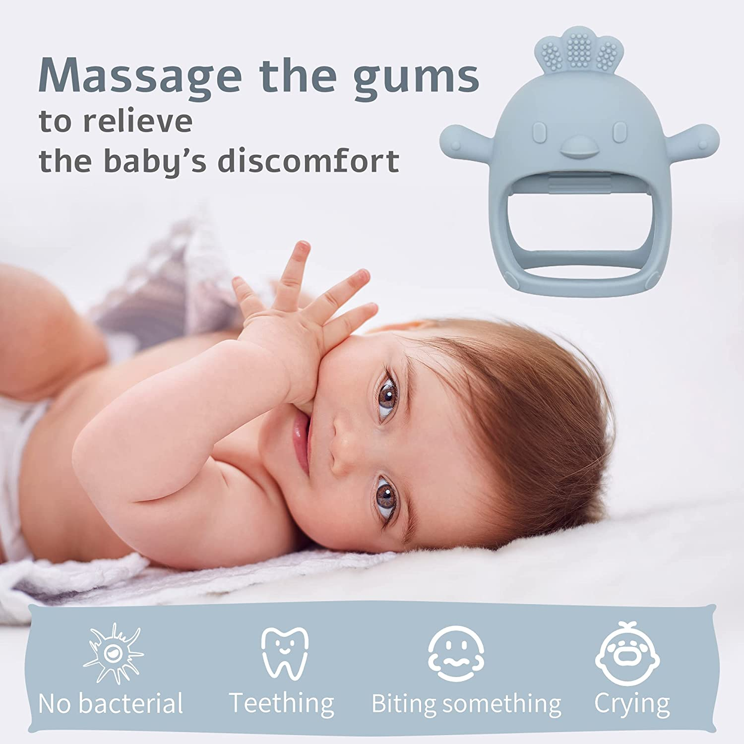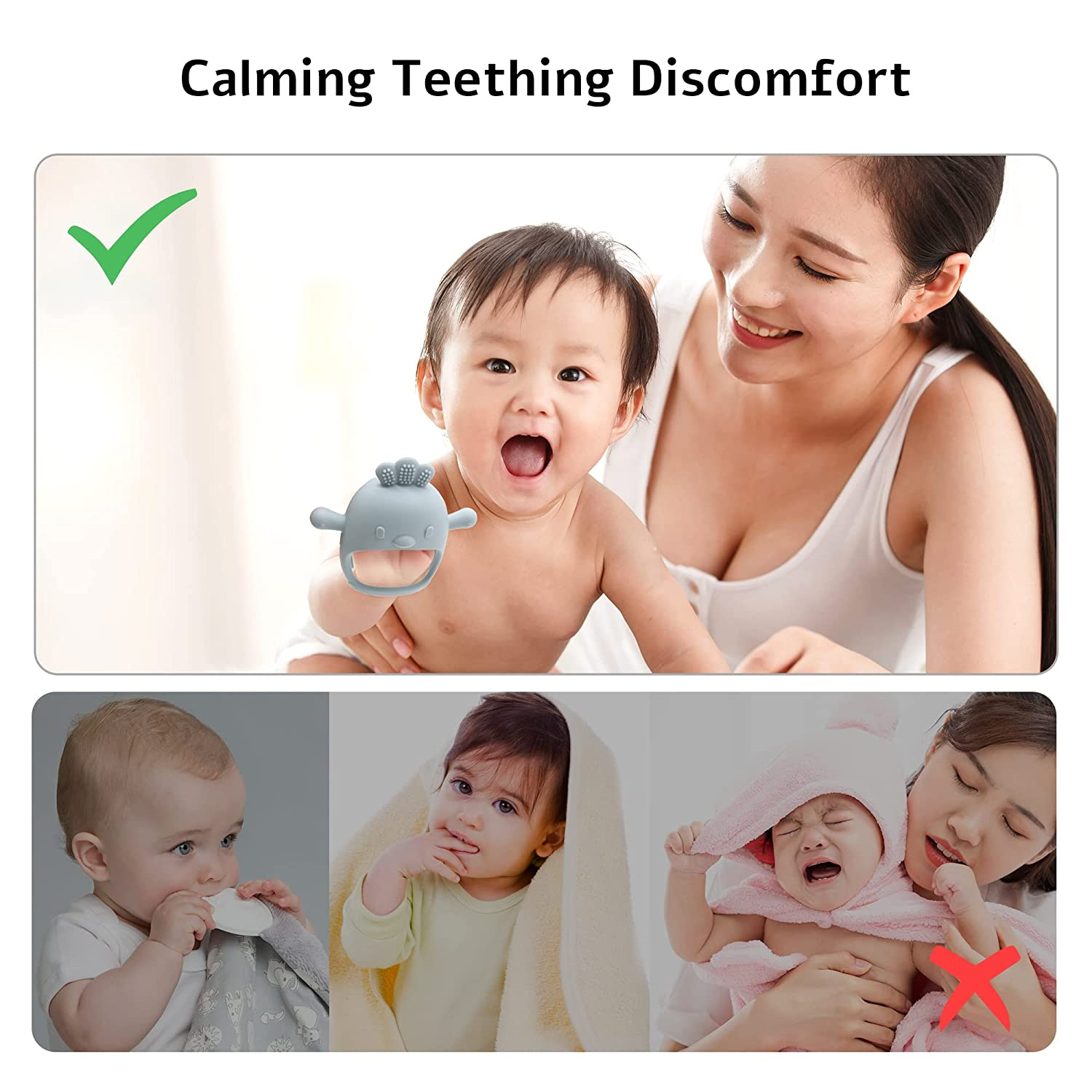 Silicone Teether Toy, for Babies 0-6 Months, BPA Free, anti Dropping Wrist Hand