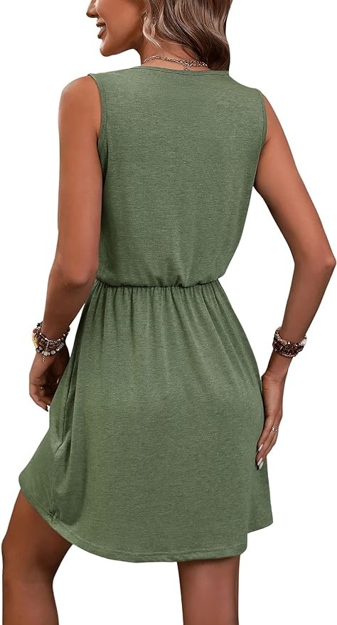 SOLY HUX Women's Summer Dresses V Neck Sleeveless A Line Solid Short Dress
